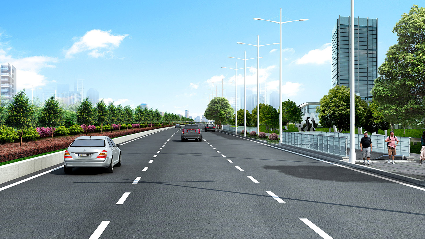 項目規(guī)模:城市主干道,設(shè)計速度50km/h,路寬60m,總長3.6Km。