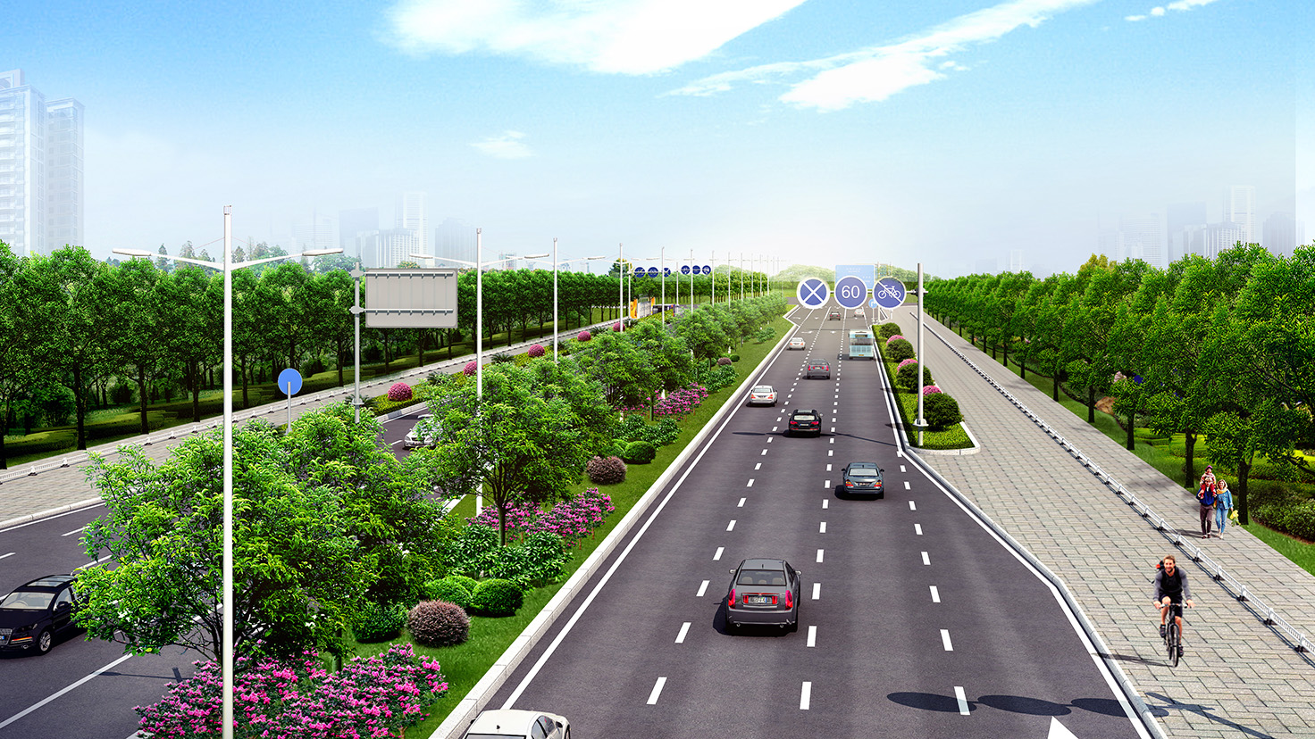 項目規(guī)模:城市主干道,設計速度60km/h,路寬55米,總長10Km。