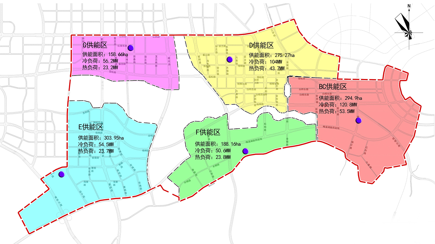 項(xiàng)目規(guī)模:重點(diǎn)規(guī)劃范圍約15.1平方公里,共規(guī)劃5座區(qū)域能源站